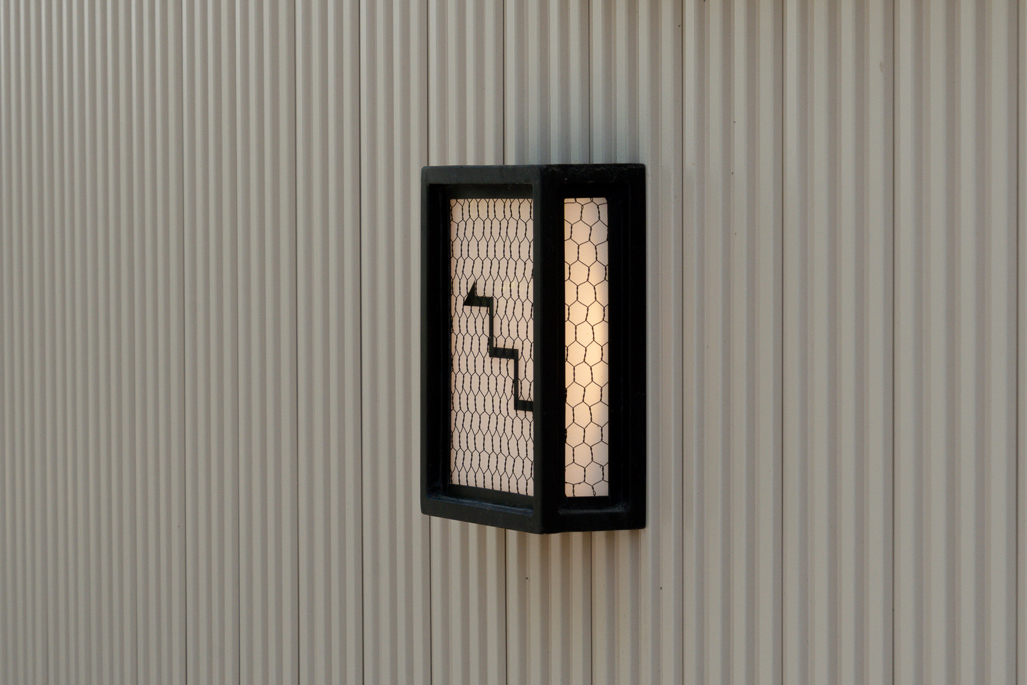 オーナーさまが両親と暮らした、思い出深い民家の一部を改装した店舗のコンセプトは“小京都”。格子をイメージした外装をはじめ、階段を上るアプローチには四角い行燈をレイアウトしました。玄関は、その狭さを逆手に取り、茶室を彷彿とさせる敷石など和のテイストで演出しています。